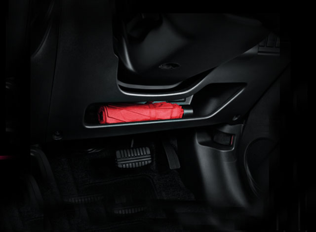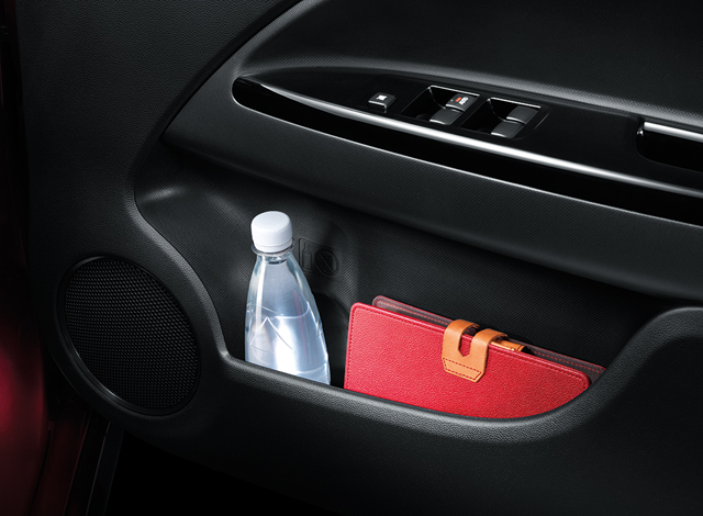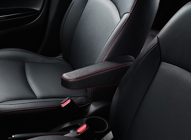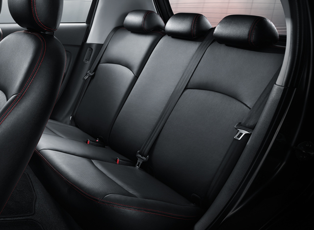 เบาะหนังและวัสดุหนังสังเคราะห์สีดำ พร้อมตกแต่งด้ายสีแดง พวงมาลัยหุ้มหนัง ตกแต่งวัสดุแบบเปียโนแบล็ค และโครเมียม